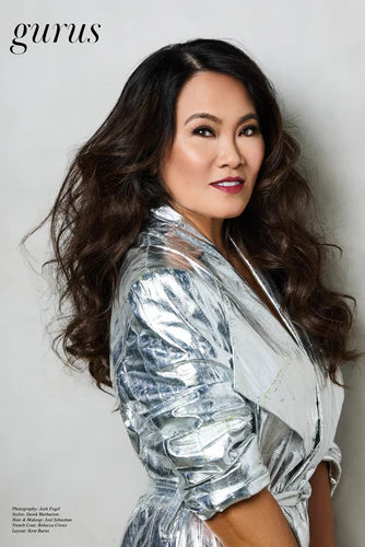 Sandra Lee in REBECCA CREWS Silver Eel Skin Trench Coat for Gurus Magazine….